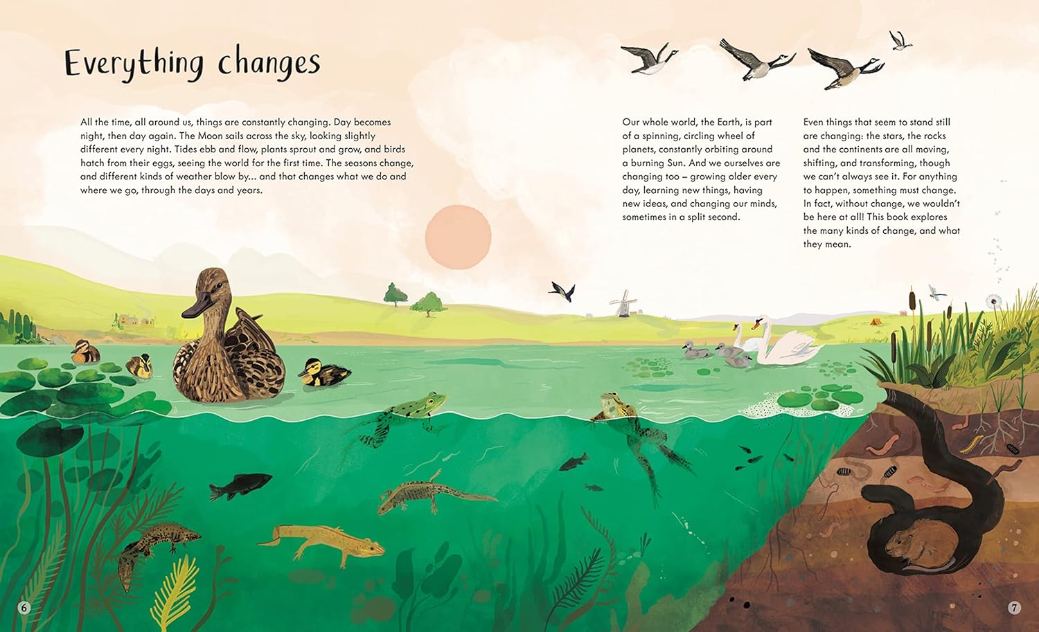 All Things Change is a lyrical and beautifully illustrated book looking at the many different processes of change in the natural world, covering geology, ecology, biology and more. It also embraces the philosophical topic of change – how do we approach changes that make us feel sad? How do we cope with changes we can't control?